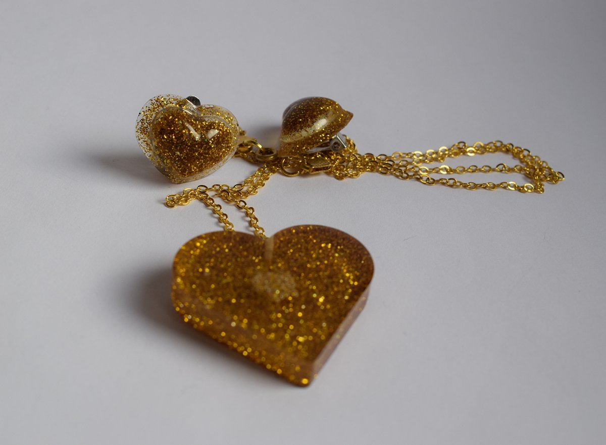 Сет „Златни Срца“ – епоксиден накит