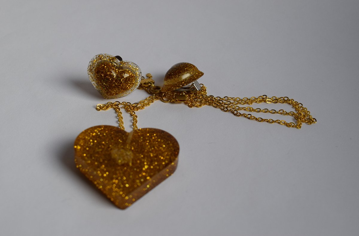 Be the first to review “Сет „Златни Срца“ – епоксиден накит”