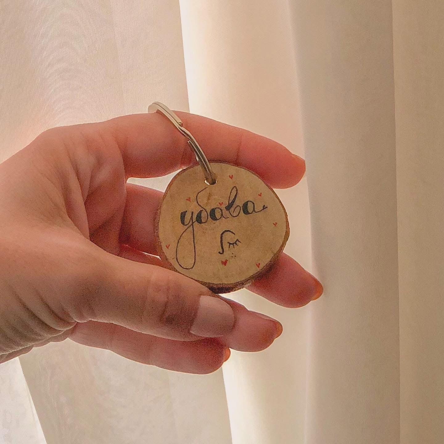 Дрвен приврзок со рачно напишана порака