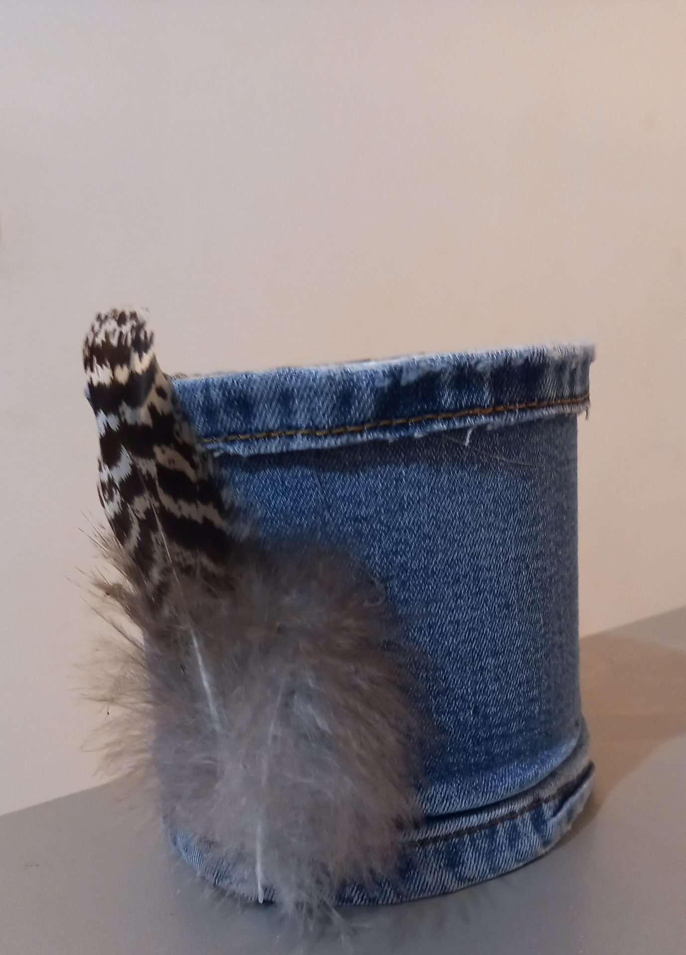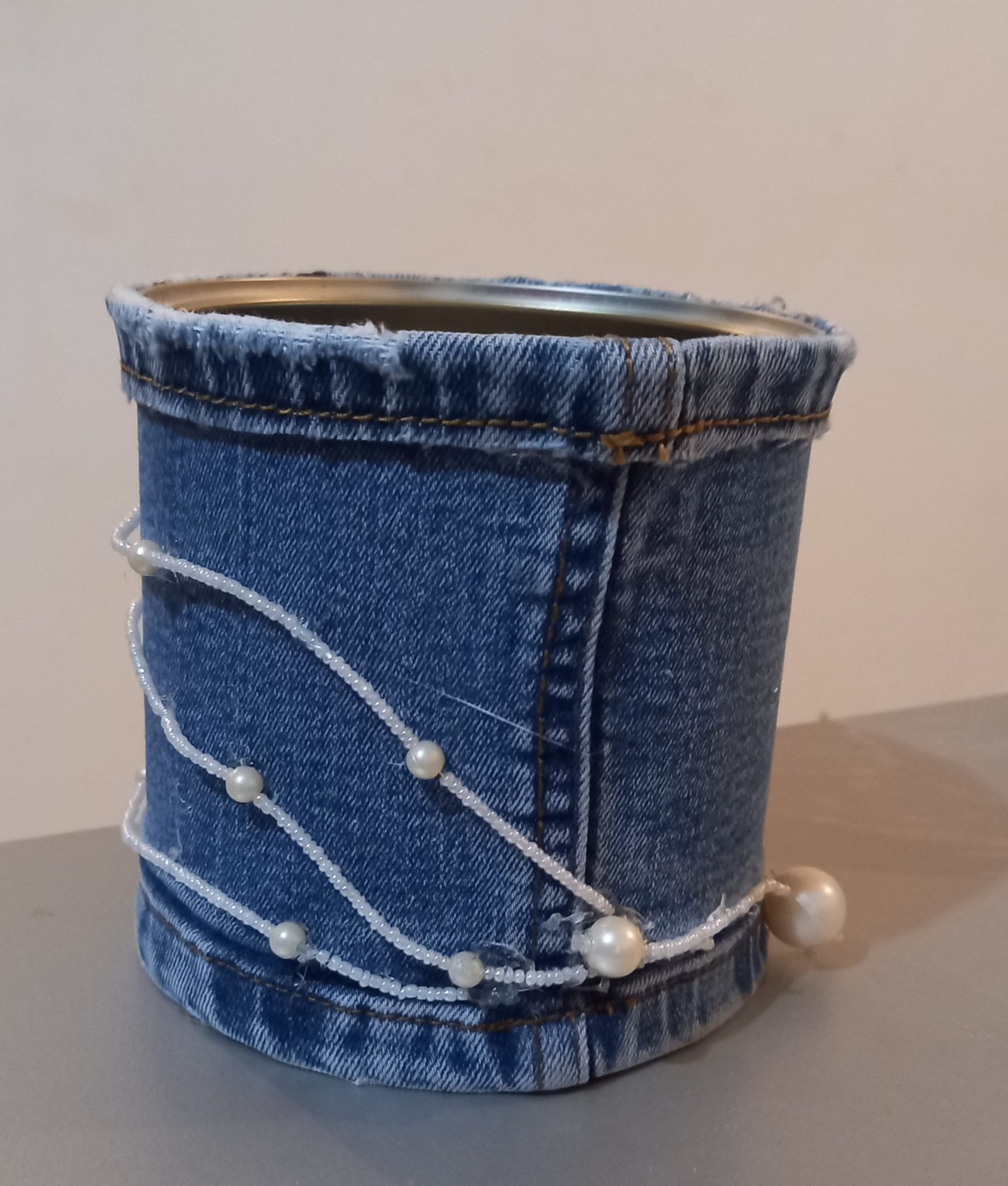 Повеќе наменски украсни кутии , рачно изработени од тексас ( школски или канцелариски прибор, шминки , чешли,саксии за цвеќе итн), внатрешност од алуминиум изработени од тексас, рачна изработка, висина 12 цм