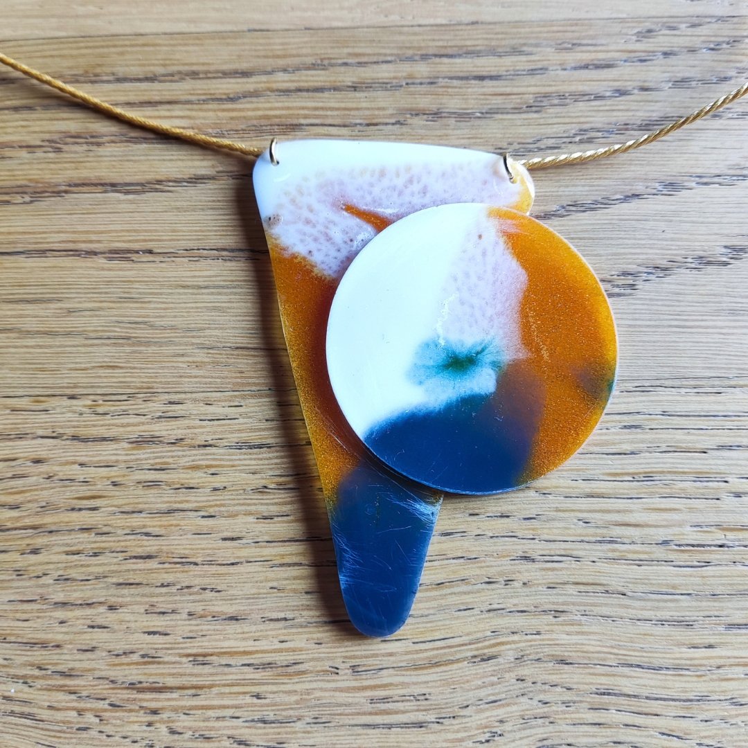 Накитот е изработен од епоксидна смола и метал (механизми за спојување). Накитот е лесен и пријатен за носење. Секое праче е уникатено и изрботено рачно во само еден примерок. Дополнително, нудиме можност за изработка на накит според Ваши насоки.